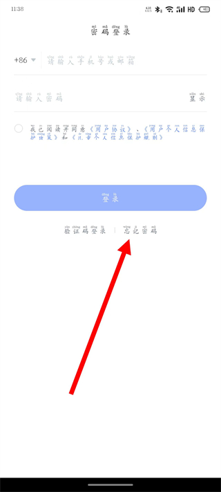3、在登录页面,点击忘记密码,进入忘记密码页面。