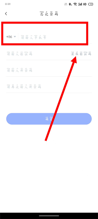 4、在忘记密码页面,输入手机号,点击获取验证码。