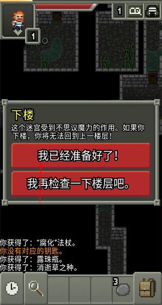 3、选择下楼探索新楼层,注意该迷宫下楼后无法返回上一楼层,需谨慎决策。