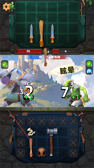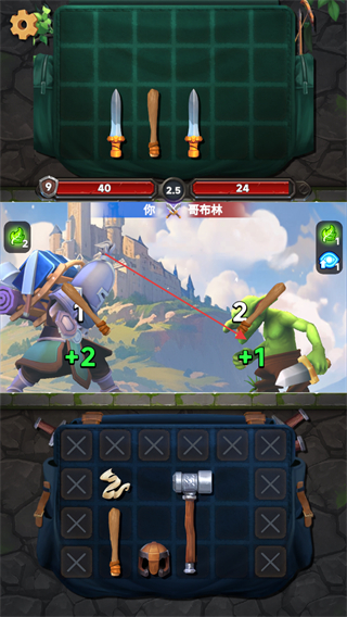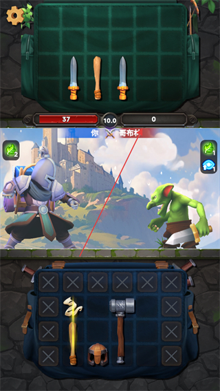 1、在战斗中,利用背包中的武器如剑攻击哥布林,根据武器属性造成不同伤害,同时注意哥布林的攻击反击。