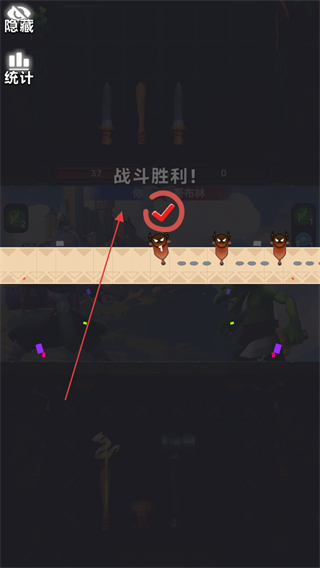 4、通过合理使用武器,击败所有哥布林后,即可获得战斗胜利,继续推进游戏进程。