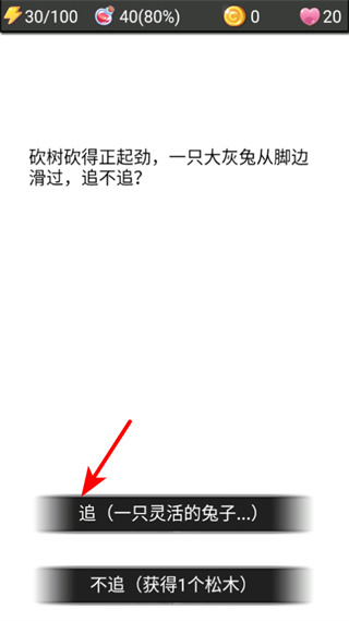 4、在野外遇到如大灰兔这类事件时,可选择追,参与事件可获取特殊奖励或解锁新内容,丰富游戏体验。