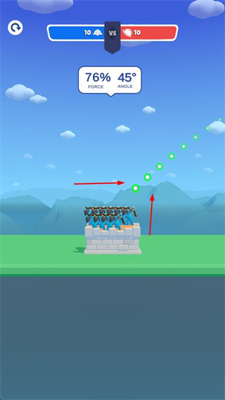 1、调整射击的力度和角度,向敌方发起攻击,开启攻防对战进程。