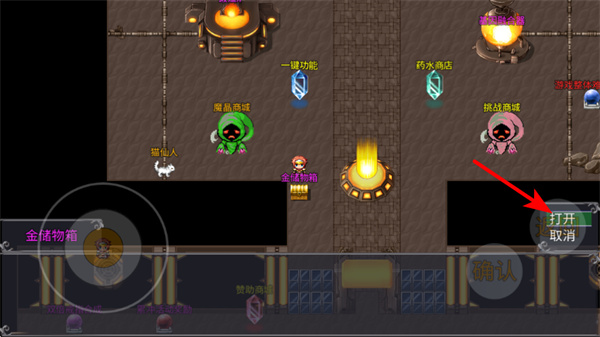 3、遇到可交互的区域或物品时,点击打开按钮,可开启宝箱或功能界面,获取资源解锁新内容。