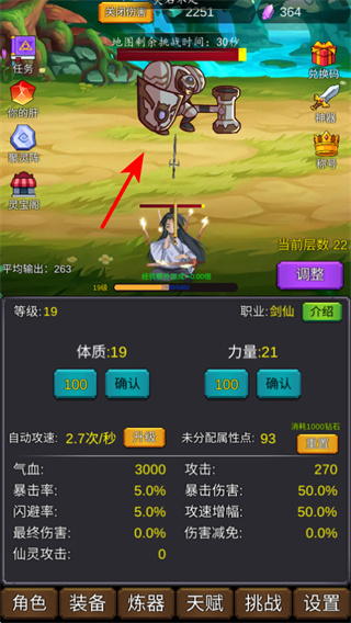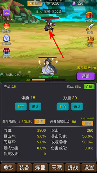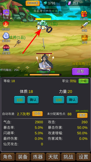 包含装备、炼器、天赋、挑战等多个系统,可通过这些系统强化气血、攻击、暴击率角色属性,搭配作弊菜单资源优势,提升修仙实力。