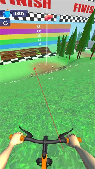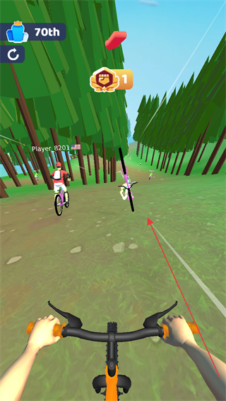 2、在森林赛道中,躲避其他骑手和障碍物,保持行驶速度,提升排名。