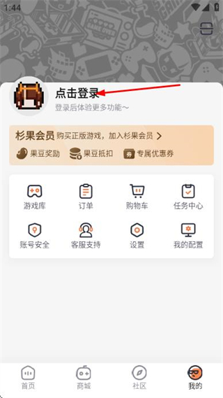 2、在我的页面点击登录,进入欢迎登录杉果的页面。