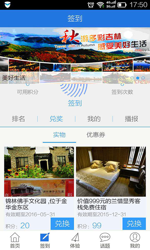 4.签到有情:只要你每天到旅友头条的“签到”栏光临一下,就可以累计积分兑换免费的旅行奖品。