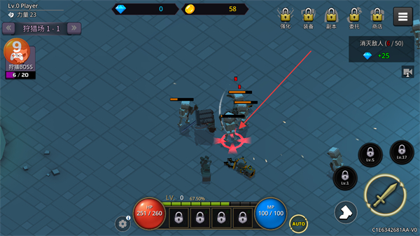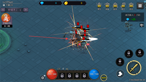 1、在狩猎场1-1中,操控角色攻击敌人,通过不断击杀敌人积累金币和经验。