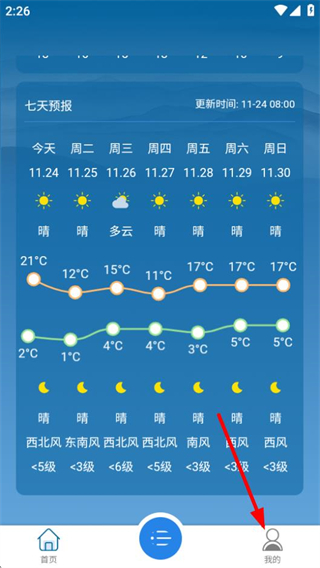 1、在皖美气象首页,点击底部导航栏的我的选项,会触发功能使用提示弹窗。