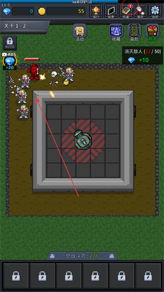 1、在关卡中,操控炮塔攻击敌人,消灭敌人可获得钻石和经验,推进关卡进度。