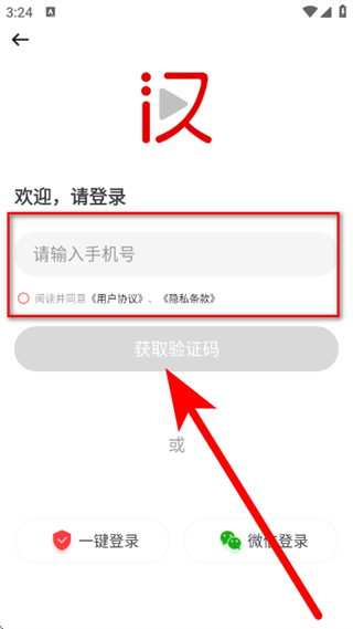 3、输入手机号,勾选阅读并同意后,点击获取验证码。