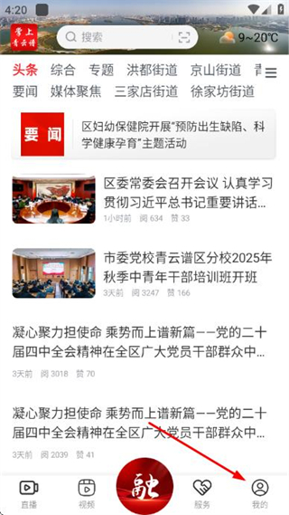 1、在掌上青云谱首页点击底部我的,进入我的页面。