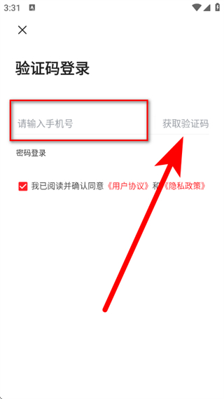 3、输入手机号,勾选已阅读并确认同意后,点击获取验证码。