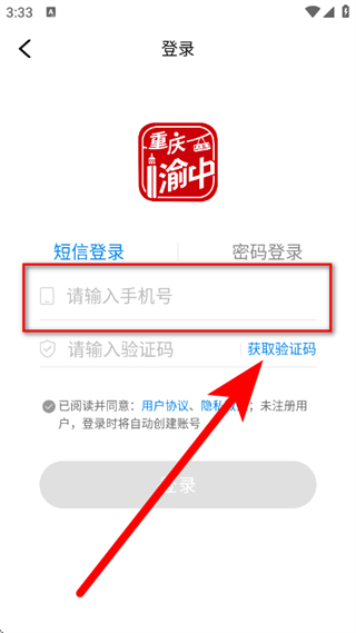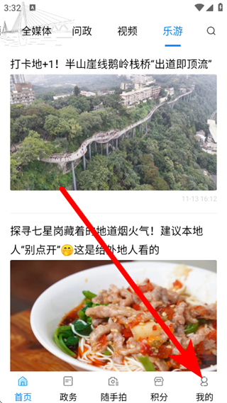 1、打开重庆渝中,在首页点击底部我的,进入登录页面。