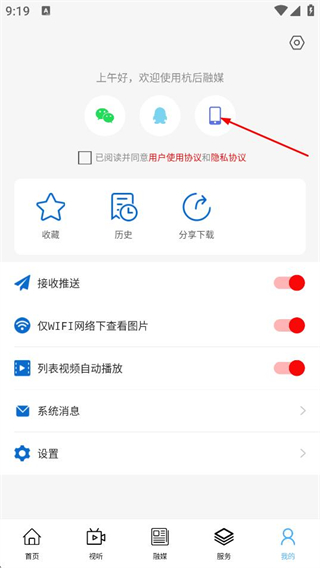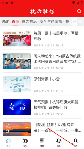 1、在杭后融媒APP首页,点击底部我的,进入个人中心页面。