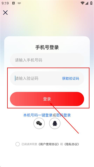 2、在个人中心页面,点击登录图标,进入手机号登录界面。