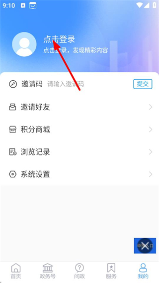 2、进入我的页面后,点击点击登录区域,可进入用户登录界面。