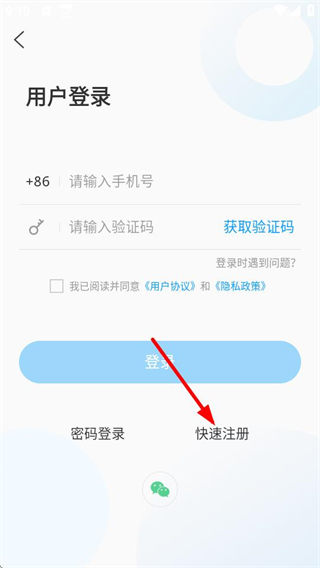 3、在用户登录界面,点击快速注册选项,可进入用户注册页面。