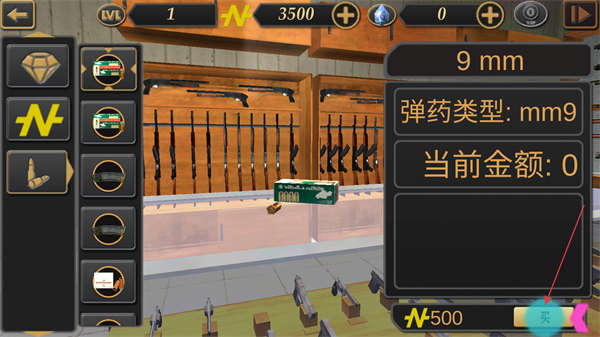4、前往对应店铺,在商店界面选择武器适配的弹药,消耗金币点击买按钮完成购买,确保武器有可用弹药。
