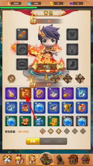 4、进入背包界面后,点击装备道具可进行穿戴,穿戴装备能大幅提升角色战力,是增强战斗能力的重要操作。