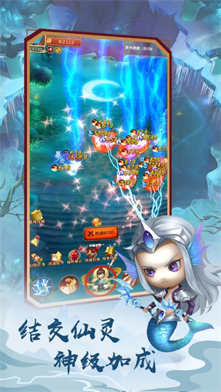 采用全屏刷怪机制,满屏BOSS密集出现,特效炫酷且伤害强劲,一招即可实现大范围清场,招招暴击伴随光柱特效,带来打击快感。