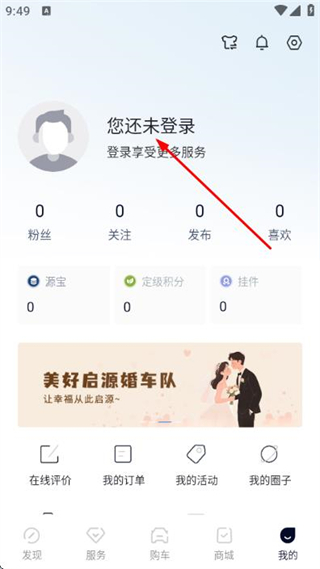 2、在我的页面点击还未登录,进入长安启源的登录页面。