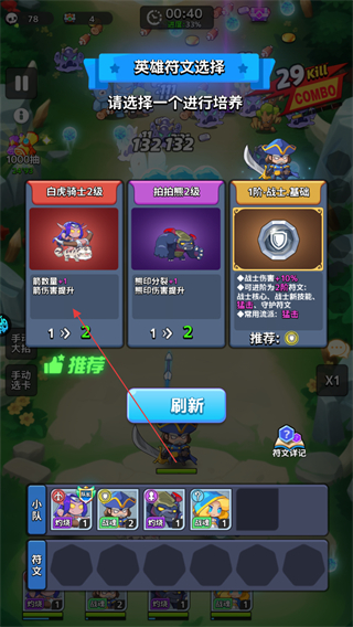 3、英雄使用技能击败上方出现的怪物后,会随机掉落各种资源宝箱等物资。
