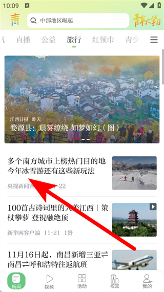 3、进入旅行频道,点击选择目标新闻,进入详情页。