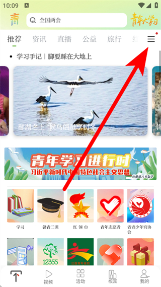 1、打开青新闻客户端,点击右上角三条横杆,进入频道页面。