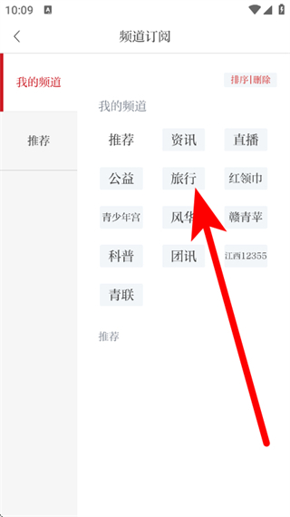 2、在频道订阅页面,点击旅行,进入列表页面。
