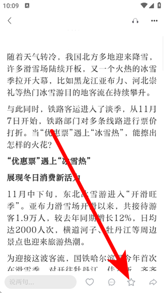 4、在新闻详情页,点击底部星星图标,完成该内容的收藏。