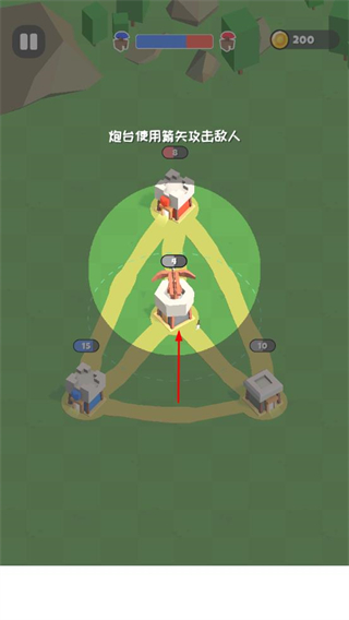 4、借助炮台等防御建筑,利用箭矢攻击敌方部队,辅助己方兵力推进,提升攻防效率。