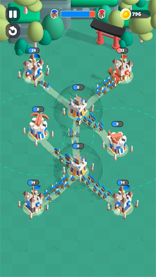 以指挥士兵征服防御塔为核心玩法,士兵类型与行动逻辑清晰,根据防御塔布局合理调配兵力,感受指挥作战的策略乐趣。
