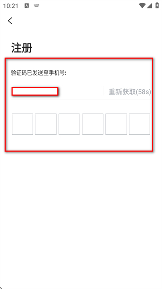 5、在注册页面,输入收到的验证码,完成注册登录。