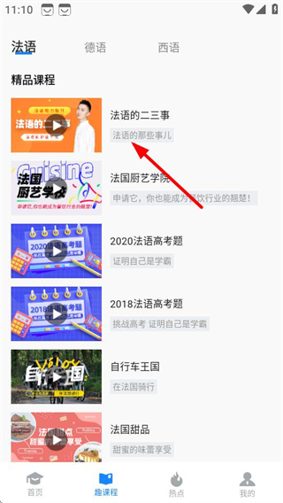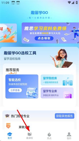 1、在趣留学GO首页,点击底部导航栏的趣课程选项,可进入课程页面。