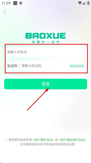 3、在登录页面填写手机号,获取并填写验证码,勾选相关协议后点击登录完成账号登录操作。