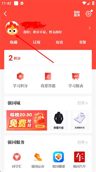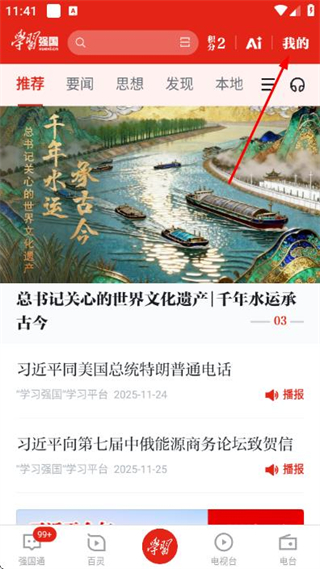 1、在学习强国首页点击右上角我的,进入我的页面。