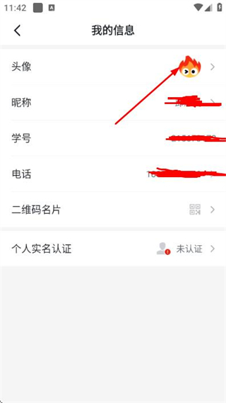 3、在我的信息页面点击头像选项,进入选择照片页面。