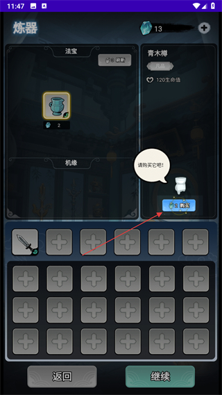 1、进入游戏后,在炼器界面,点击购买需要的炼器品。