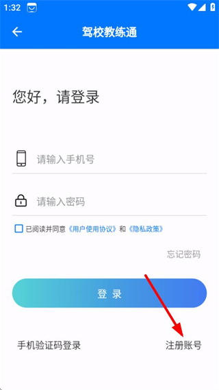 3、在登录界面,点击注册账号选项,可进入注册页面。