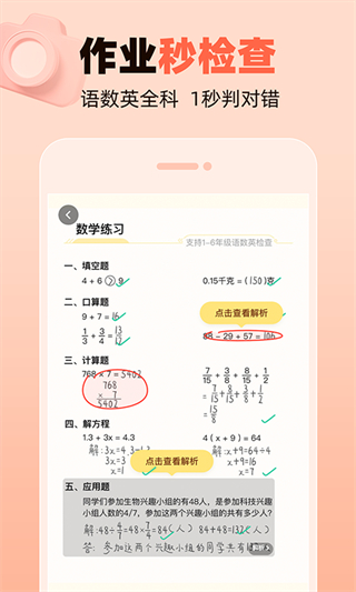 涵盖语文数学英语多学科作业辅导,覆盖小学阶段核心学科需求,从基础练习到难点解析全面适配,无需切换多个工具,一站式满足孩子不同学科的作业辅导需求,让家庭辅导更高效。