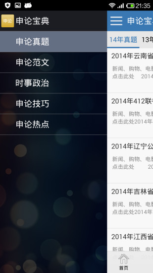 申论科目考试一直是公务员考试中的重头戏,它主要考察应考者的阅读理解能力,综合分析能力,提出和解决问题能力和文字表达能力.为了帮助大家更有效的备战申论考试,这个APP收录了这部公务员考试申论宝典供大家参考。申论关键是要平时注重对多种知识的积累,注重写作的练习.考生还要熟悉并掌握“申论”的做题方法. 希望您高考顺利,早日金榜题名!