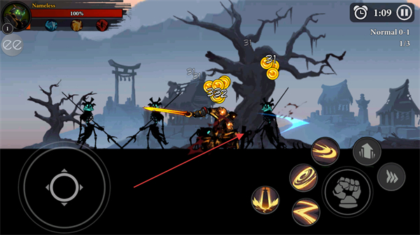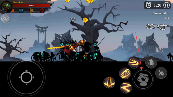2、点击拳套技能按钮,释放范围攻击快速清理周围敌人。