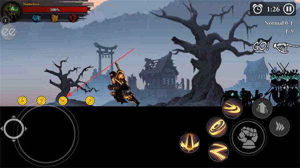 1、操控角色移动,自动攻击敌方单位,同时拾取场景中的金币道具。