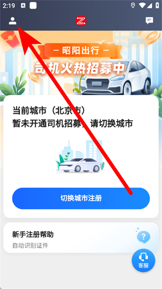1、打开昭阳出行司机端,点击左上角个人头像,进入个人页面。