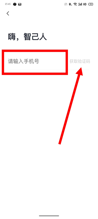3、在嗨,智己人页面,输入手机号,点击获取验证码。