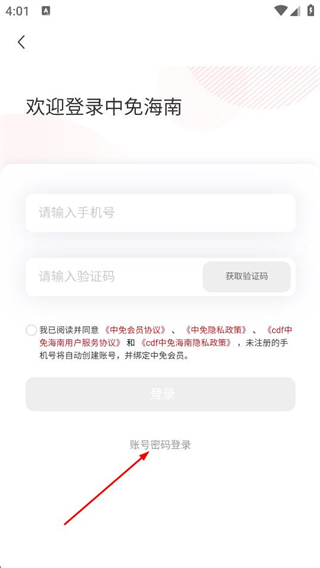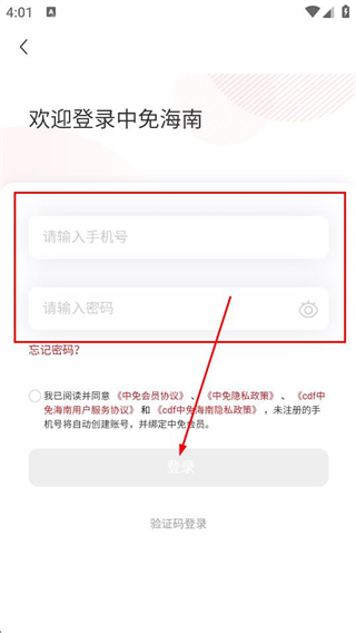 5、在密码登录界面,输入手机号和密码,点击登录,完成账号登录。