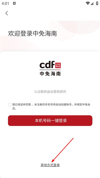 3、在欢迎登录界面,点击其他方式登录,进入手机号登录页面。
