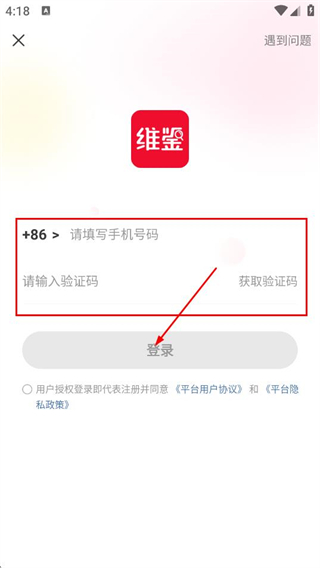 4、在登录界面,填写手机号输入收到的验证码,点击登录,完成账号登录。
